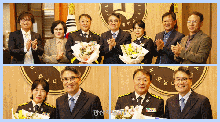 [±¤»êÀú³Î] ¹Ú»óö È£³²´ëÇб³ ÃÑÀåÀº 11¿ù 8ÀÏ ÃÑÀå½Ç¿¡¼ Á¦62Áֳ⠼ҹæÀdz¯À» ¸Â¾Æ ±¤»ê¼Ò¹æ¼ ¼Ò¹æ°æ À̹̼÷ ¾ÈÀüº¸°ÇÆÀÀå°ú È£Á¦ÇÑ 119Àç³´ëÀÀ°ú ÁÖÀÓ(¼Ò¹æÀ§)¿¡°Ô ǥâÀå°ú °¨»çÆÐ¸¦ ¼ö¿©Çß´Ù.