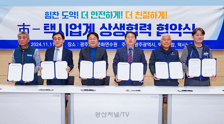 [±¤»êÀú³Î] ±¤ÁÖ±¤¿ª½Ã(½ÃÀå °±âÁ¤)´Â 11ÀÏ ±¤ÁÖ±³Å빮ȿ¬¼ö¿ø¿¡¼ Áö¿ª Åýþ÷°è °ü°èÀÚµé°ú Åýÿî¼Û»ç¾÷ ¹ßÀü ¹× ´ë½Ã¹Î ±³ÅëÆíÀÇ ÁõÁøÀ» À§ÇÑ »ó»ýÇù·Â Çù¾àÀ» ¸Î¾ú´Ù.