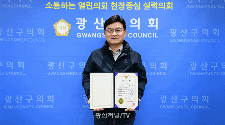 [±¤»êÀú³Î] °øº´Ã¶ ±¤»ê±¸ÀÇ¿ø(´õºÒ¾î¹ÎÁÖ´ç, ½ÅÈﵿ¡¤¿ì»êµ¿¡¤¿ù°î1¡¤2µ¿¡¤¿î³²µ¿)ÀÌ Á¦79Áֳ⠰æÂûÀÇ ³¯À» ¸Â¾Æ °æÂûÇàÁ¤ ¹ßÀü¿¡ À̹ÙÁöÇÑ °ø·Î·Î ±¤ÁÖ°æÂûû(ûÀå ¹Ú¼ºÁÖ Ä¡¾È°¨)À¸·ÎºÎÅÍ °¨»çÀåÀ» ¹Þ¾Ò´Ù.