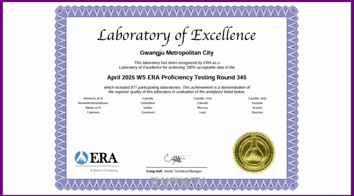 ±¤ÁÖ±¤¿ª½Ã(½ÃÀå °±âÁ¤)´Â »ó¼öµµ»ç¾÷º»ºÎ ¼öÁú¿¬±¸¼Ò°¡ ¿ÃÇØ ȯ°æºÎ ±¹¸³È¯°æ°úÇпø ÁÖ°ü ¼÷·Ãµµ ½ÃÇè°ú ±¹Á¦°øÀÎ ¼÷·Ãµµ ½ÃÇè ¿î¿µ±â°ü(ERA) ¼÷·Ãµµ ÇÁ·Î±×·¥¿¡ Âü¿©ÇØ 18°³ Ç׸ñ ¸ðµÎ ¡®¸¸Á·(Satisfactory)¡¯ ÆÇÁ¤À» ¹Þ¾Æ ÃøÁ¤ºÐ¼® ´É·Â ¿ì¼ö±â°üÀ¸·Î ¼±Á¤µÆ´Ù°í 20ÀÏ ¹àÇû´Ù.