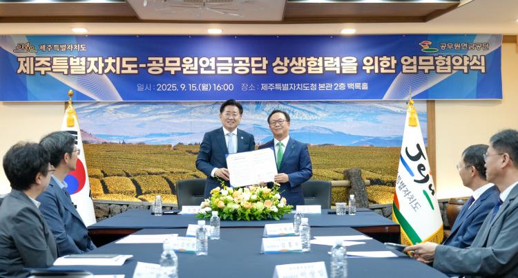[±¤»êÀú³Î] °ø¹«¿ø¿¬±Ý°ø´Ü(ÀÌ»çÀå ±èµ¿±Ø, ÀÌÇÏ ¡®°ø´Ü¡¯)Àº Á¦ÁÖÆ¯º°ÀÚÄ¡µµ(µµÁö»ç ¿À¿µÈÆ)°ú 9¿ù 15ÀÏ Á¦ÁÖµµÃ» ¹é·Ï Ȧ¿¡¼ °íÇâ»ç¶û±âºÎÁ¦ Ȱ¼ºÈ µî »ó»ý Çù·ÂÀ» À§ÇÑ ¾÷¹«Çù¾àÀ» ü°áÇß´Ù.