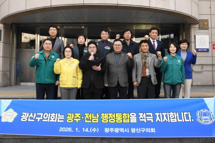 [±¤»êÀú³Î] ±¤»ê±¸ÀÇȸ(ÀÇÀå ±è¸í¼ö)°¡ ±¤ÁÖ¡¤Àü³² ÇàÁ¤ÅëÇÕÀ» ÁöÁöÇÏ´Â °ø½Ä ¼º¸íÀ» ¹ßÇ¥Çϸç, ÅëÇÕ ÃßÁøÀÇ ½Å¼ÓÇÑ ÀÌÇàÀ» °·ÂÈ÷ Ã˱¸Çß´Ù. ±¤»ê±¸ÀÇȸ´Â 14ÀÏ ¹ÚÇØ¿ø ÀÇ¿ø(´õºÒ¾î¹ÎÁÖ´ç, ÷´Ü1¡¤2µ¿)ÀÌ ´ëÇ¥ ¹ßÇ¥ÇÑ ¼º¸í¼¸¦ ÅëÇØ ¡°±¤ÁÖ¡¤Àü³² ÇàÁ¤ÅëÇÕÀº ´õ´Â ¹Ì·ê ¼ö ¾ø´Â ½Ã´ëÀû °úÁ¦¡±¶ó¸ç ¡°Áö¿ªÀÇ ¹Ì·¡ °æÀï·Â È®º¸¿Í ÁֹΠ»îÀÇ Áú Çâ»óÀ» À§ÇØ ÅëÇÕ ÃßÁø¿¡ Àû±ØÀûÀ¸·Î Âù¼ºÇÑ´Ù¡±°í ¹àÇû´Ù.