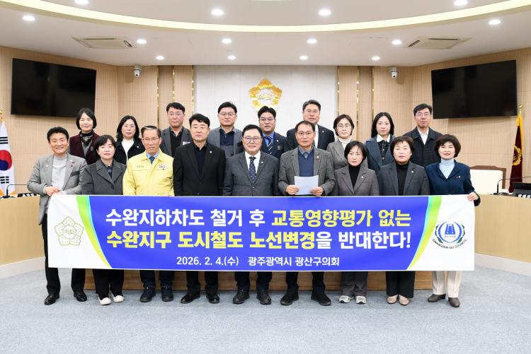 ±¤»ê±¸ÀÇȸ´Â 4ÀÏ ±è¿µ¼± ÀÇ¿ø(´õºÒ¾î¹ÎÁÖ´ç, ¼ö¿Ïµ¿¡¤Çϳ²µ¿¡¤ÀӰ)ÀÌ ´ëÇ¥ ¹ßÇ¥ÇÑ ¼º¸í¼¸¦ ÅëÇØ, ÃÖ±Ù ±¤ÁÖ±¤¿ª½Ã°¡ µµ½Ãöµµ 2È£¼± 2´Ü°è 13°ø±¸(¼ö¿ÏÁö±¸) ±¸°£ÀÇ ½Ã°ø ºÒ°¡ »çÀ¯¸¦ ¹àÈ÷¸ç Á¦½ÃÇÑ ´ë¾Èµé¿¡ ´ëÇØ ½É°¢ÇÑ ¿ì·Á¸¦ Ç¥¸íÇß´Ù.